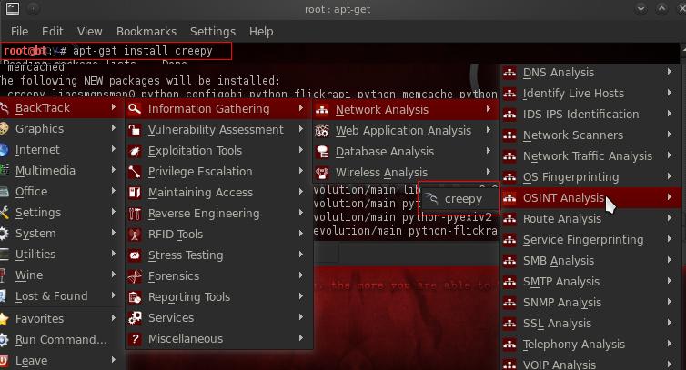 Dentro de aplicaciones para descubrir información, me gusta mucho Creepy. Si usas Backtrack 5 solo tienes que hacer un apt-get