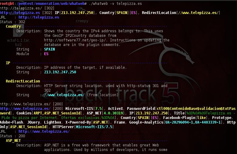 Sencillo script publicado en Backtrack 5 ( debes reinstalarlo para solventar dependencias de Ruby) para obtener información útil de objetivos