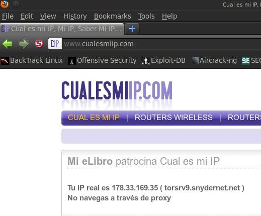 Una vez configurado el proxy en nuestro navegador web favorito…o disponible, tenemos que probar algo así, en definitiva, que estamos saliendo por la red Tor.