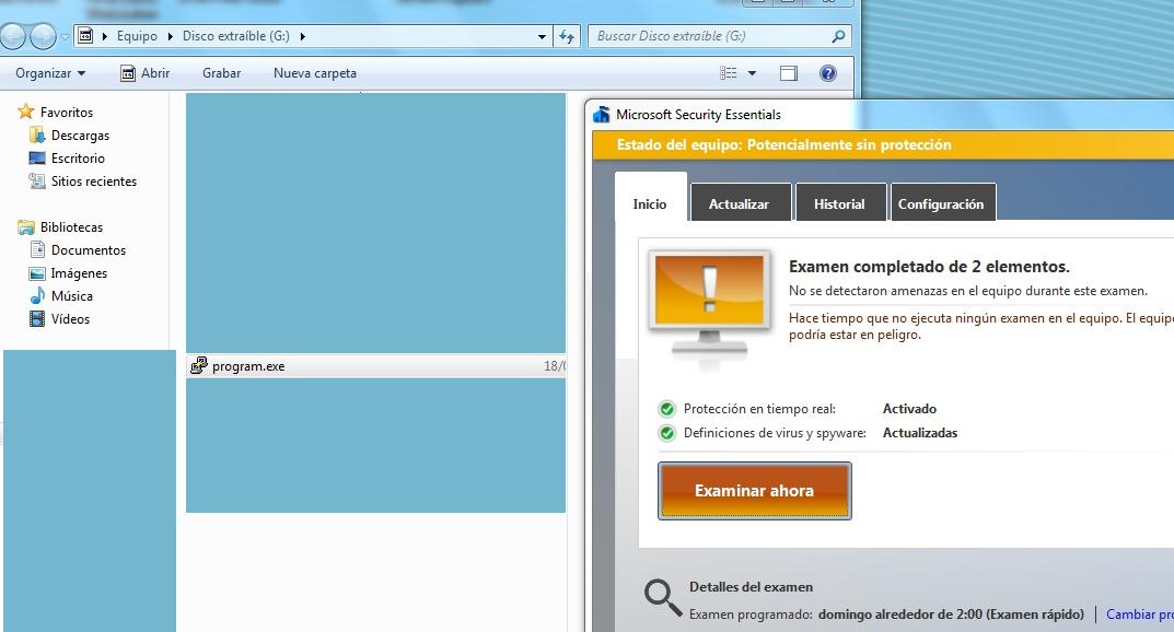 Si ejecutamos el fichero exe, se produce la infección. Yo lo he probado en windows 7 pro. actualizado y con el antivirus de Microsoft, y se ejecuta perfectamente.