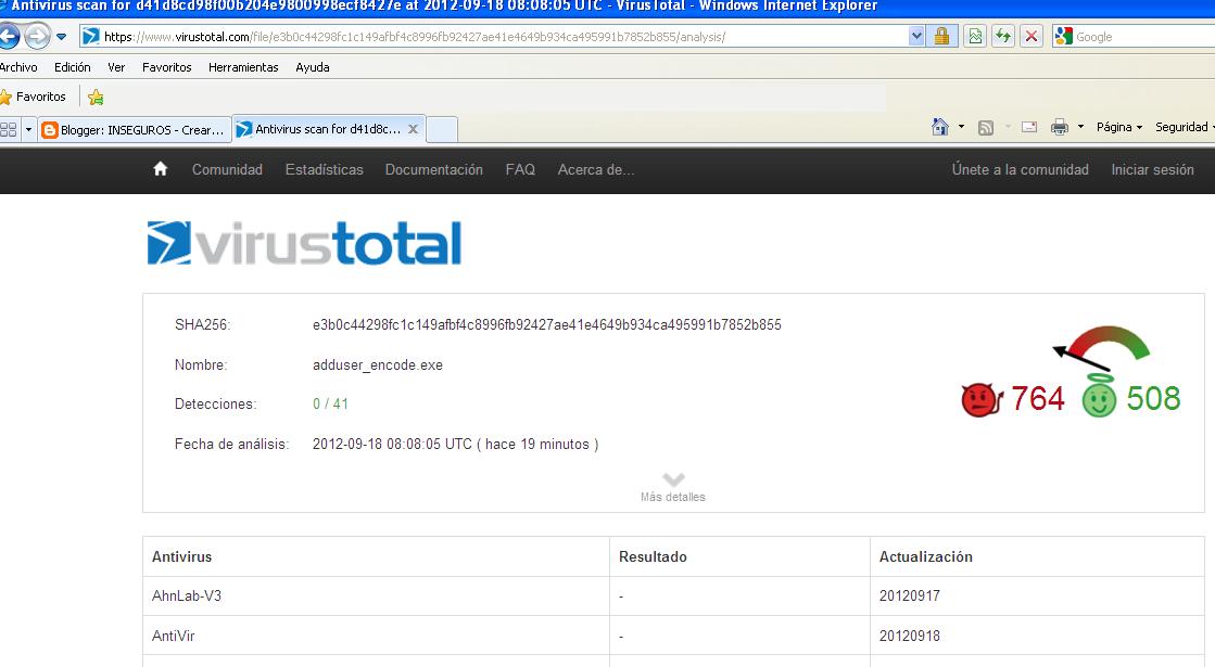 No he probado con muchas mas antivirus esta codificación, pero VirusTotal me dice esto: