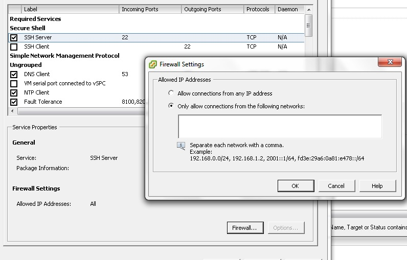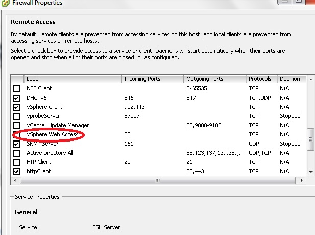 Una de las cosas que he hecho es habilitar el servicio SSH para poder administrar la consola de Esxi en el caso de caídas del algún servicio crítico que no me permita usar el Client.