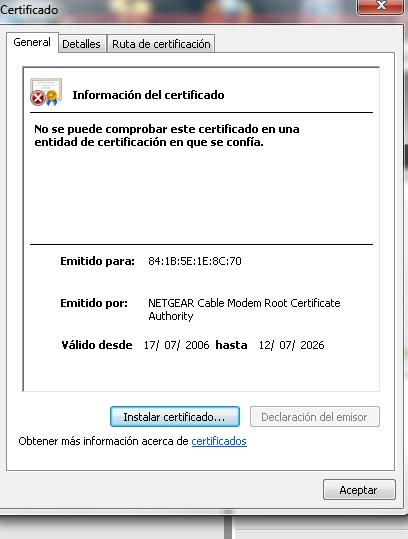 En este caso el problema es que Netgear firma su certificado, pero… quien es Netgear en el «world wide web» para que yo confíe en ellos?