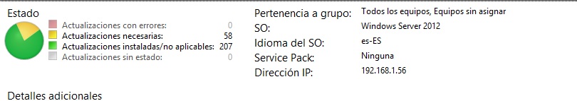 Como podéis ver, muestra en el resumen para ese equipo 58 Parches no instalados. Lo mismo que me dice WSUS.