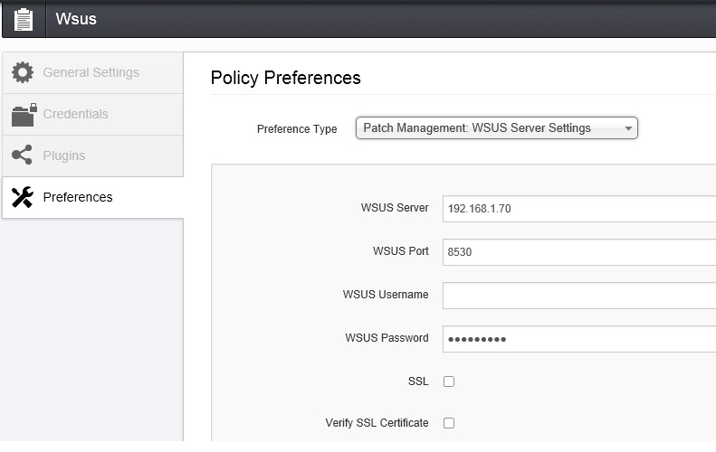 Lo primero que debemos hacer es configurar una Política o Policies. Como el propósito de este test no es saber los puertos abiertos, vulnerabilidades, etc desmarco todas esta opciones. En preferencias seleccionamos Patch Management: WSUS Server Settings y configuramos los datos del servidor WSUS. En Plugins, los que muestro. Un consejo, desmarcar todos los plugins, y mediante un filtro, buscar por «contiene la palabra Wsus».