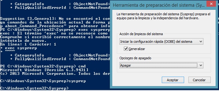 Ahora vamos a realizar un SYSPREP para «difumir» los datos propios de esta instalación como son los Identificadores, licencias, datos de usuario etc. No vamos a unir la máquina al dominio aún ya que Sysprep trabajar sin esa configuración.
