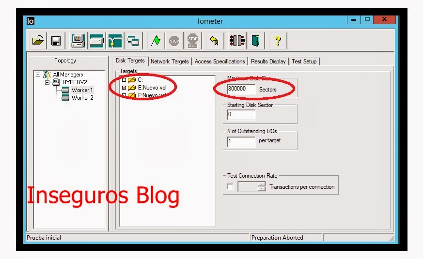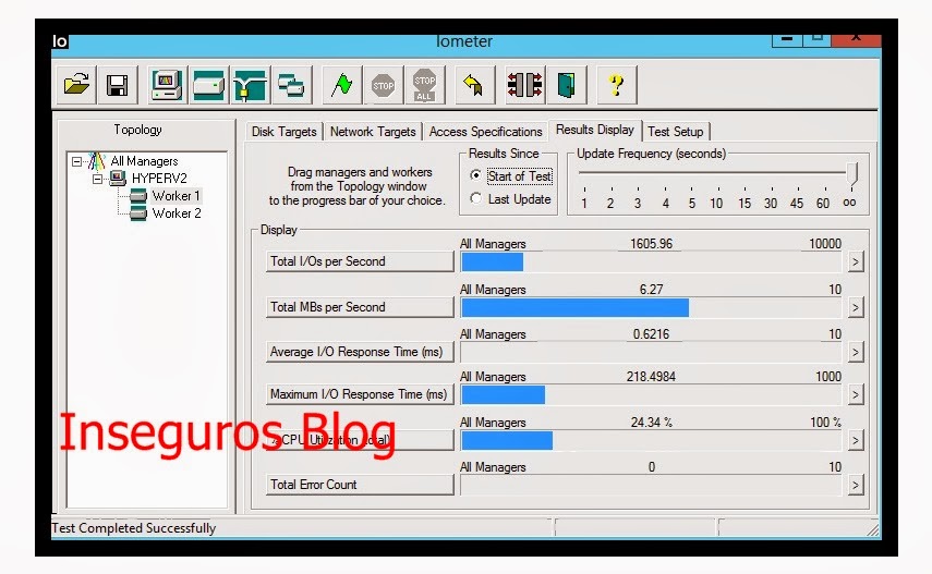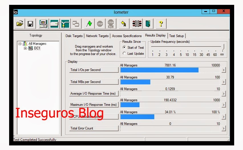 Y lanzamos una prueba de escritura y lectura con el software IOMETER.
