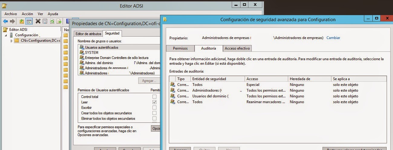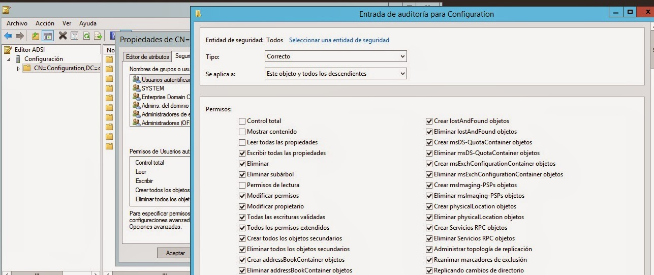 Ahora vamos a configurar la auditoría del esquema Active Directory, algo importante para auditar 🙂