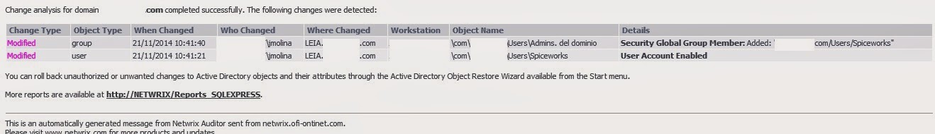 Auditoria IT. Netwrix. Parte 2. Eventos en Active Directory.