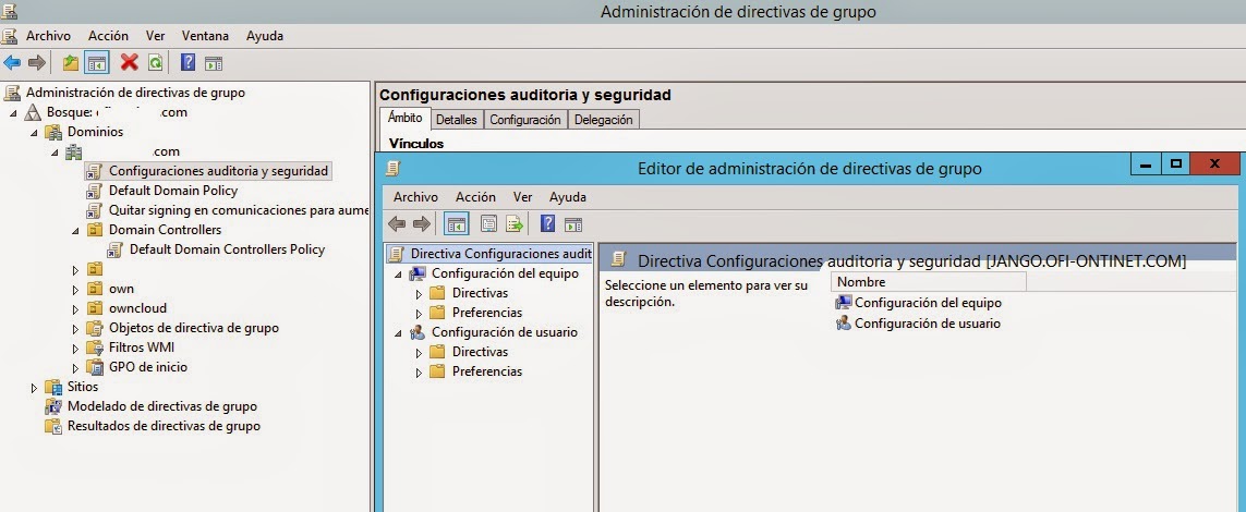 Lo primero que voy a hacer es desde un controlador de dominio, voy a crear una política de seguridad para añadir todas las opciones que voy a habilitar, y así poder indentificar facilmente a la hora de ajustar.