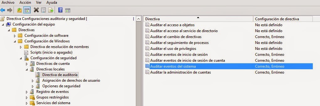 De esta manera vamos a habilitar la auditoría de acceso a objetos de Active Directory, eventos relacionados con la administración, con los inicios de sesión…