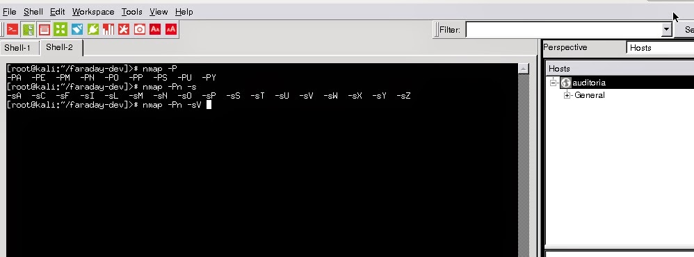 Como podemos abrir varias shells, nos permite realizar múltiples escaneos, con distintas opciones, o distintos host, sean cual sean tus hábitos, toda la información que se va generando se aglutina de manera gráfica.