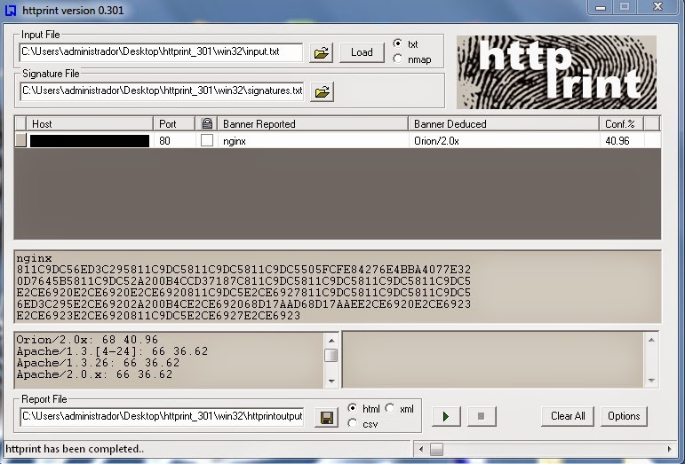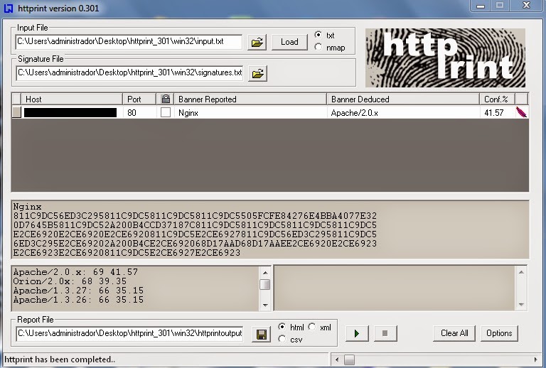 Ahora voy a bajar una herramienta clásica en la obtención de información, Httprint de Net-square. Ejecutamos el reconocimiento…
