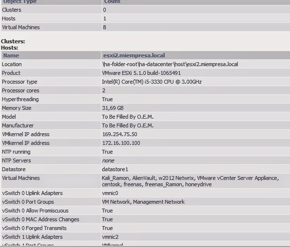 En primer lugar, como concepto de auditoría puro y duro, el sistema nos arroja una descripción detallada de nuestro inventario de máquinas virtuales, con todo tipo de detalles de configuración.