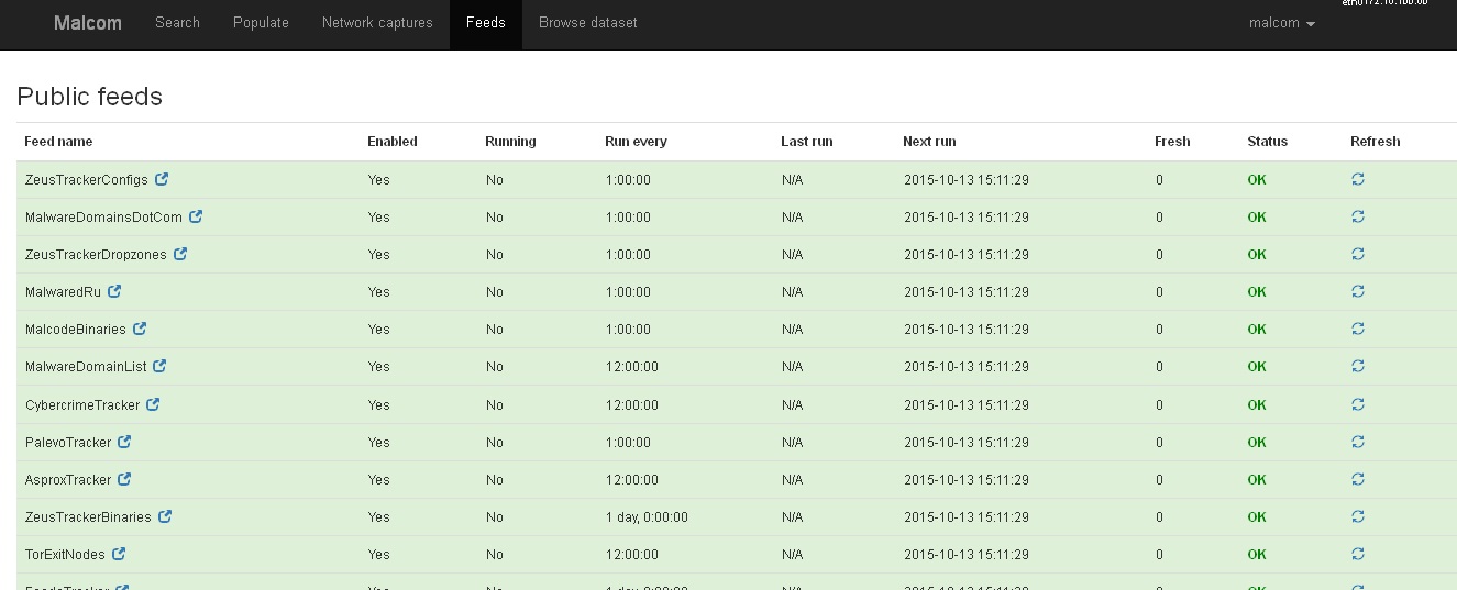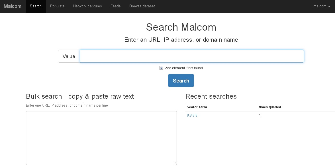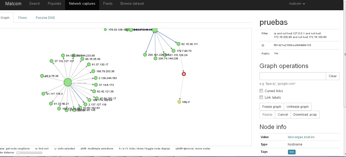 La herramienta tiene varias posibilidades, buscar de las distintas fuentes o feeds, introducir las nuestras y la parte de introducir un pcap y ver el tráfico de red de manera esquemática, para visualizar facilmente servidores C&C y demás.