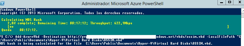 Ahora debemos efectuar la subida del disco, como haríamos con un Datastore Vmware o Hyper-v convencional. Un detalle, el disco debe estar en formato VHD y no en el nativo de 2012 VHDX, por lo que si has creado la máquina virtual con hyper-v sin especificarle lo contrario, deberás convertir el disco de vhdx a vhd con el editor de discos del propio Hyper-v, o con PowerShell mediante: