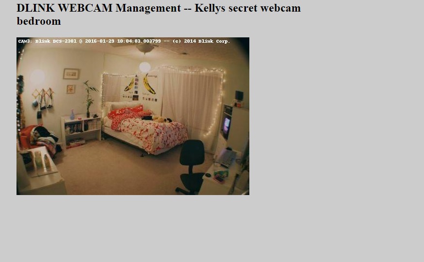 Para realizar esta prueba, y conociendo al personal, he cambiado el fichero que muestra la ímágen por una imagen al azar sacada de Internet de lo que podría ser un dormitorio femenino, por eso de atraer más público. He cambiado los textos de la marca de la cámara y poco más, a recolectar ataques web.