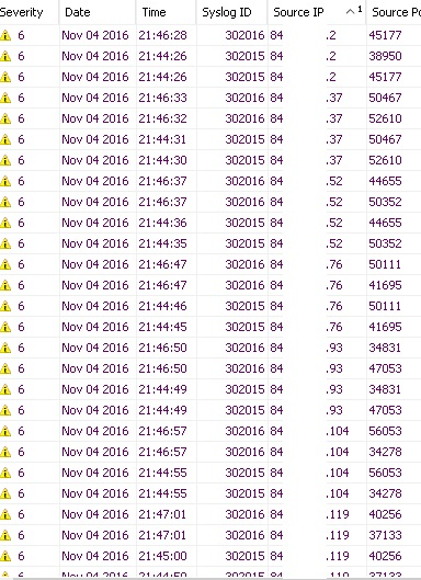 Como se aprecia en la imagen, todos los equipos con el puerto abierto y el usuario/password por defecto, emiten una solicitud NTP desde el rango que medio se ve, un /24 que empieza por 84.