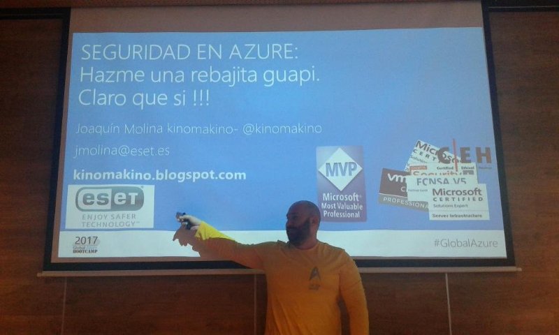 La última charla así que recuerdo de este año fue en la sede Microsoft Ibérica, en el evento anual de Azure Bootcamp, contando cositas de seguridad en Azure. En esa charla me lo pasé genial !!! a pesar del amarillo del jersey xD.