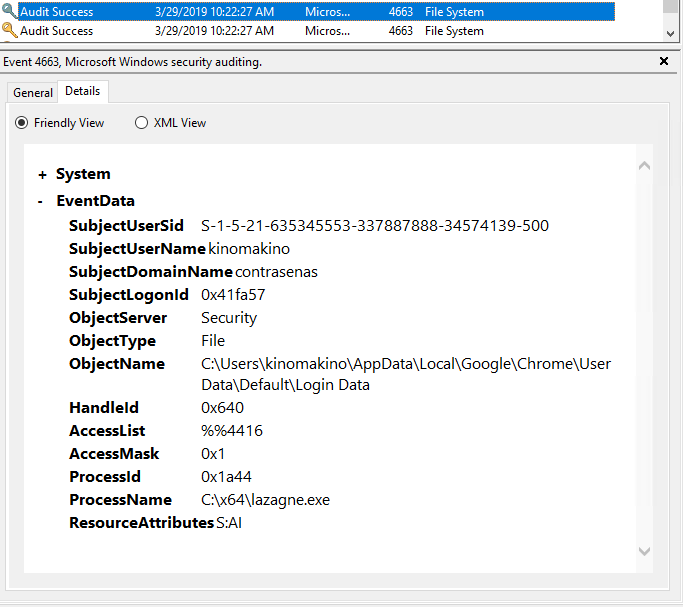 Con esto y un bizcocho, tendremos un log muy simpático cada vez que alguien o algo acceda al susodicho recurso. Por lo que si en nuestro gestor de logs levantamos una alerta para cuando el proceso que lee el fichero sea distinto a Chrome… tenemos la detección hecha.