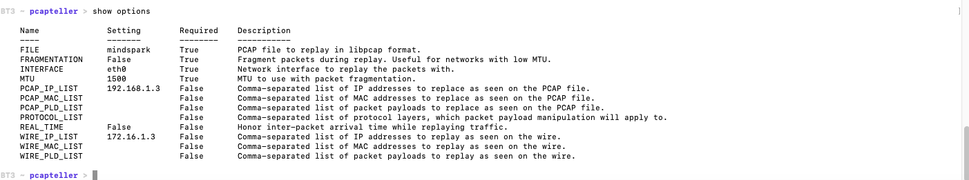 Vamos a probar otra opción interesante de la herramienta, la posibilidad de gestionar la retransmisión de ficheros pcap, cambiando muy fácilmente las direcciones ip y mac.