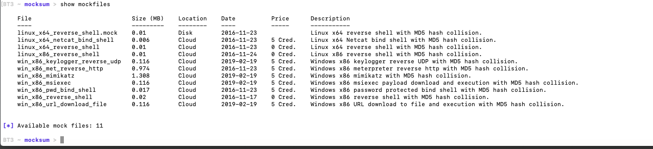 Otra de las opciones que implementa esta herramienta es la de usar las colisiones matemáticas del algoritmo MD5 para generar hashes, o mejor dicho, ficheros con el mismo hash que muestra clasificadas como maliciosas, como pueda ser una shell inversa con netcat, mimikatz, etc.