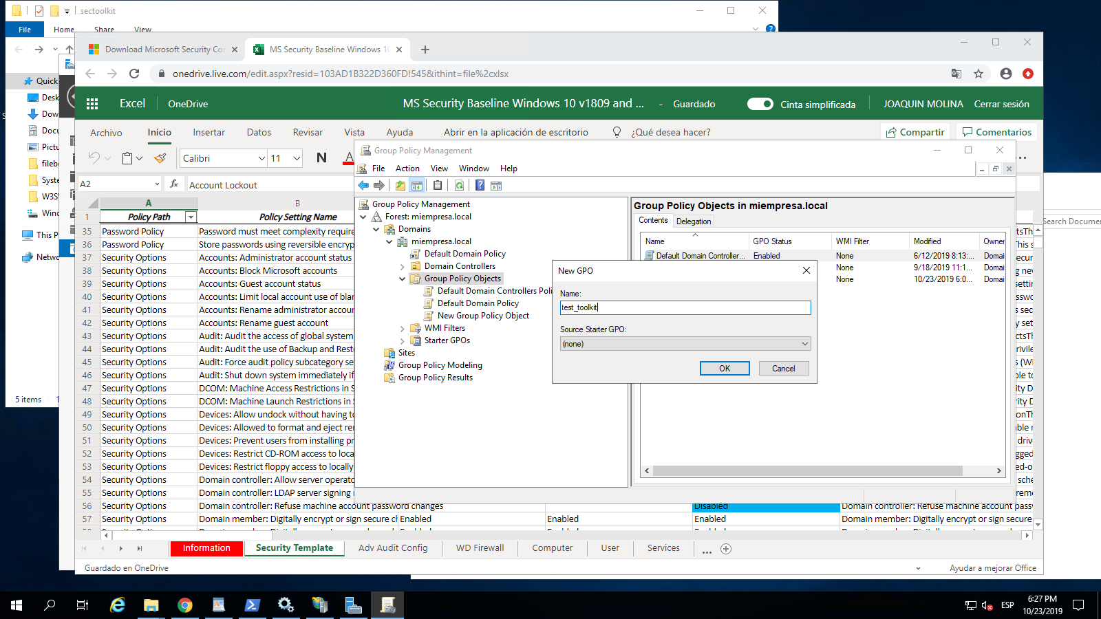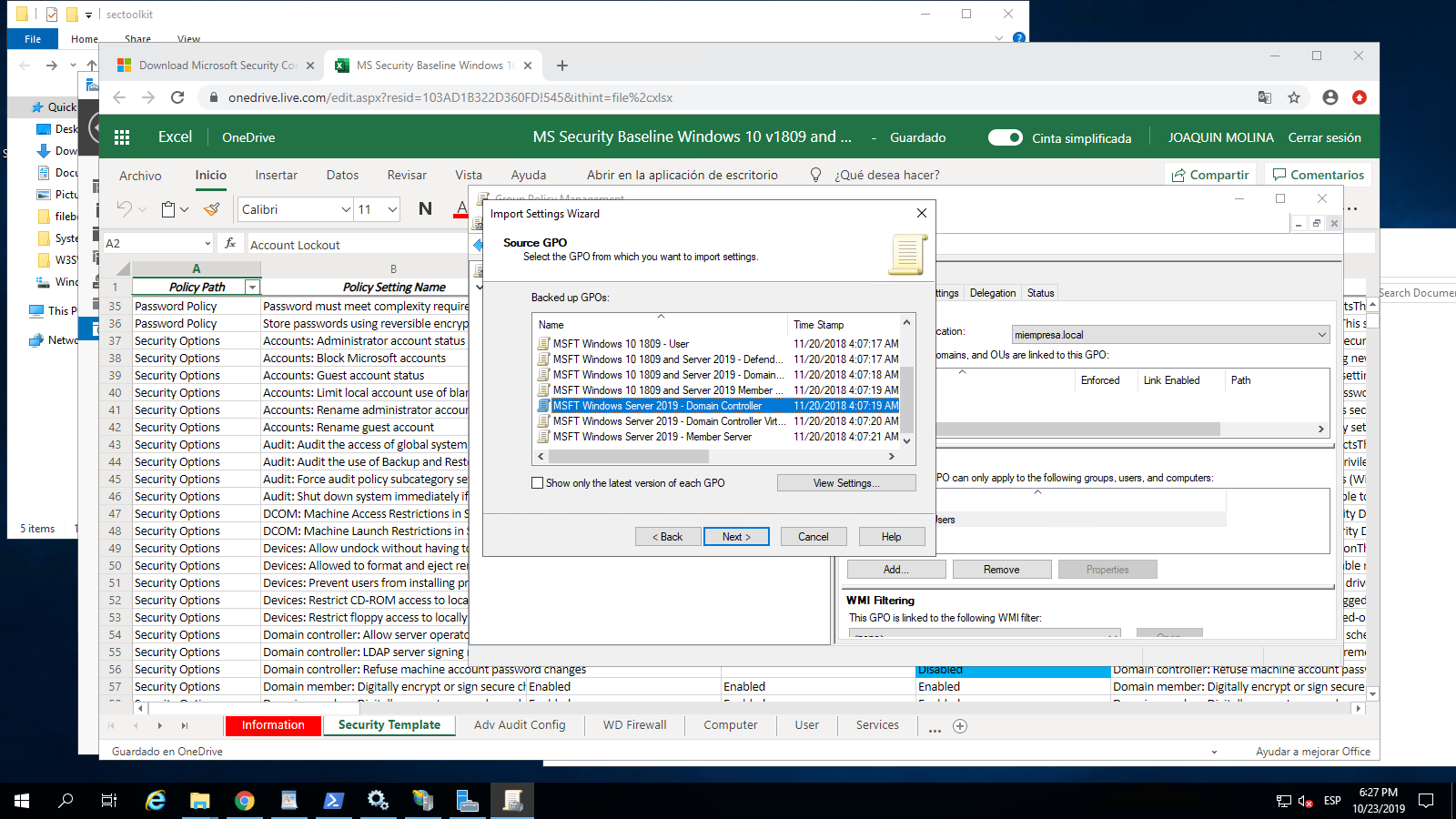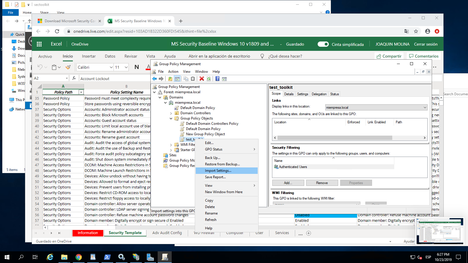 Es momento de irnos al editor de directivas de grupo y crear una, darle a importar, e importar el setting que nos corresponde. Sencillo !!!