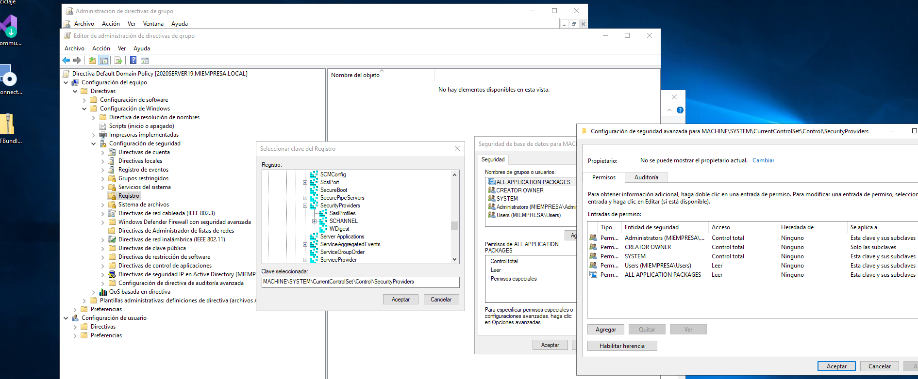 Para eso usamos la rama Registro de las GPO en las que nos permite realizar esto, indicar qué claves del registro y qué permisos tienen, así, podemos emplearlo para un grupo de servidores (Por OU o como quiera que apliques la directiva).