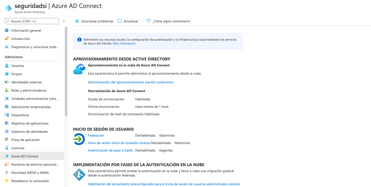 El proceso parte de un Active Directory sin ningún tipo de conexión con Azure, por lo que si ya tienes algún servicio tipo Microsoft 365 o similar, algunos pasos ya los tendrás.