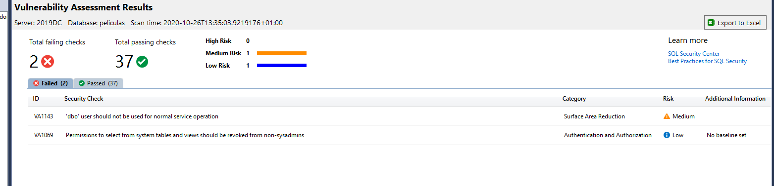 Aunque recuerda que puedes ejecutar el análisis de vulnerabilidades sin nada de todo esto en los nuevos SqlServe 2019.