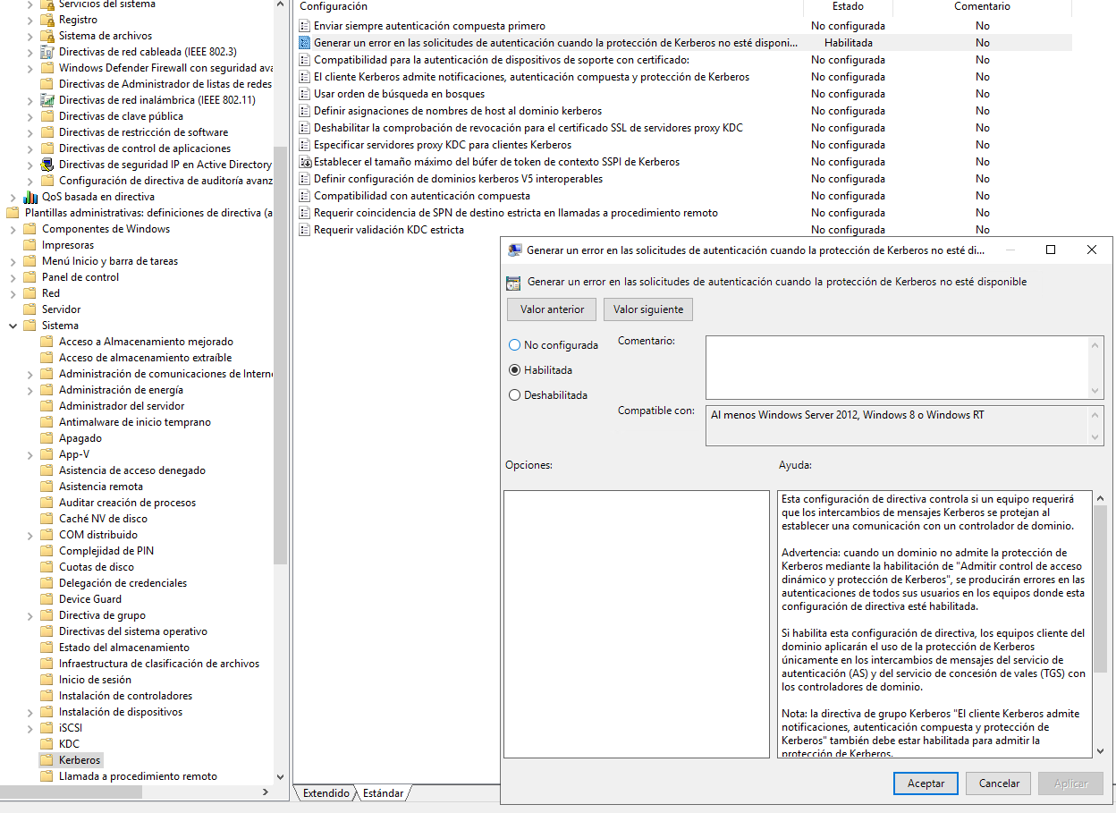 Si tenemos otro ambiente debemos de ser muy cuidadosos con esto o perderemos integración con Kerberos en esos dispositivos.