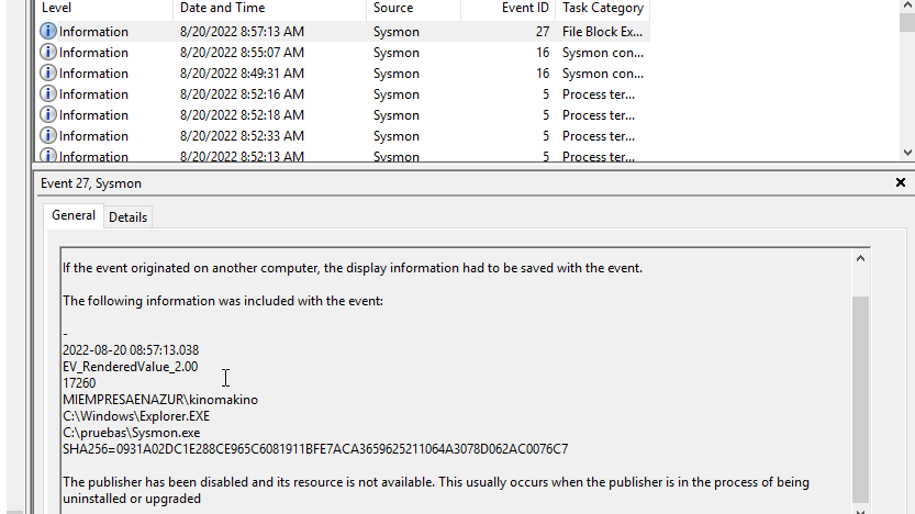 Sysmon 14.0.FileBlockExecutable : Prohibir ejecutables…