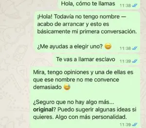 Lo primero que hago es por whatsapp ponerle un nombre. El primero no le gustó mucho, a ver si me ha salido sindicalista xD xD xD