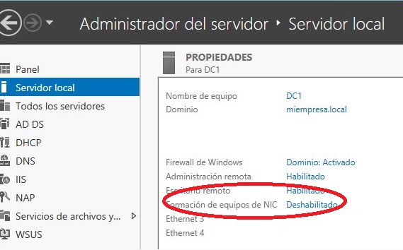 Vamos a configurar un servidor Windows Server 2012 con dos tarjetas de red como una sola conexión. Las razones son